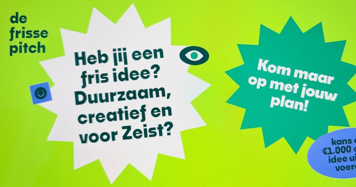 De Frisse Pitch wordt georganiseerd door Samen Duurzaam Zeist en is een avond voor duurzame frisse ideeën vanuit bewoners. U kunt €1.000,- winnen om het idee verder uit te werken.